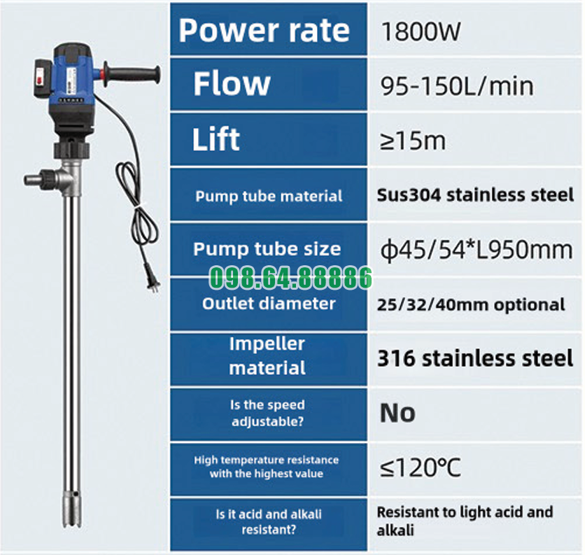 Bơm thùng phuy nhiệt độ cao JDT-1800W-G120 giúp tối ưu hóa nhân lực sản xuất
