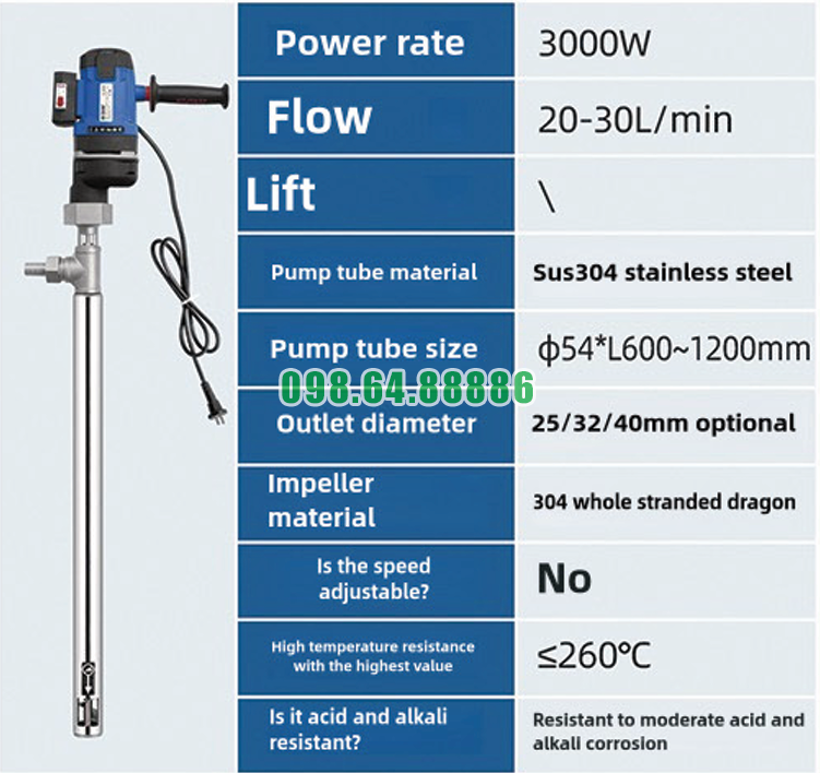 Bơm bồn/phuy nhiệt độ cao 260°C JDT-3000W-JLG260