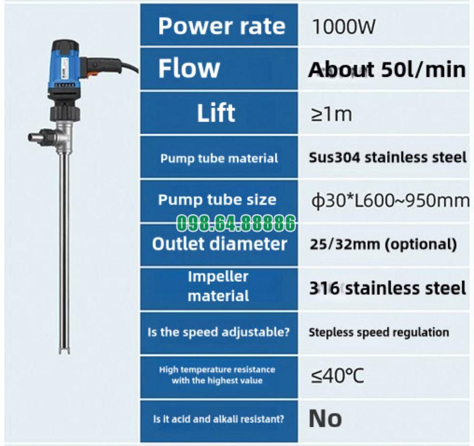 Bơm dầu thùng phuy mini chạy điện JDT-1000W-30SUS304