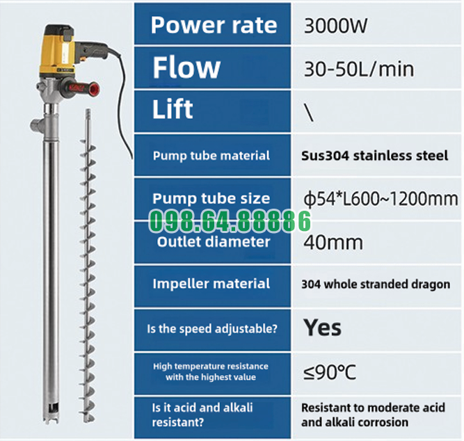 Nhờ thiết kế khoa học, độ bền cao và khả năng làm việc linh hoạt, Bơm điện cầm tay hút thùng phuy JDT-3000W-YT trở thành giải pháp hiệu quả cho việc bơm hút và sang chiết nhiều loại chất lỏng trong các ngành công nghiệp hiện nay.