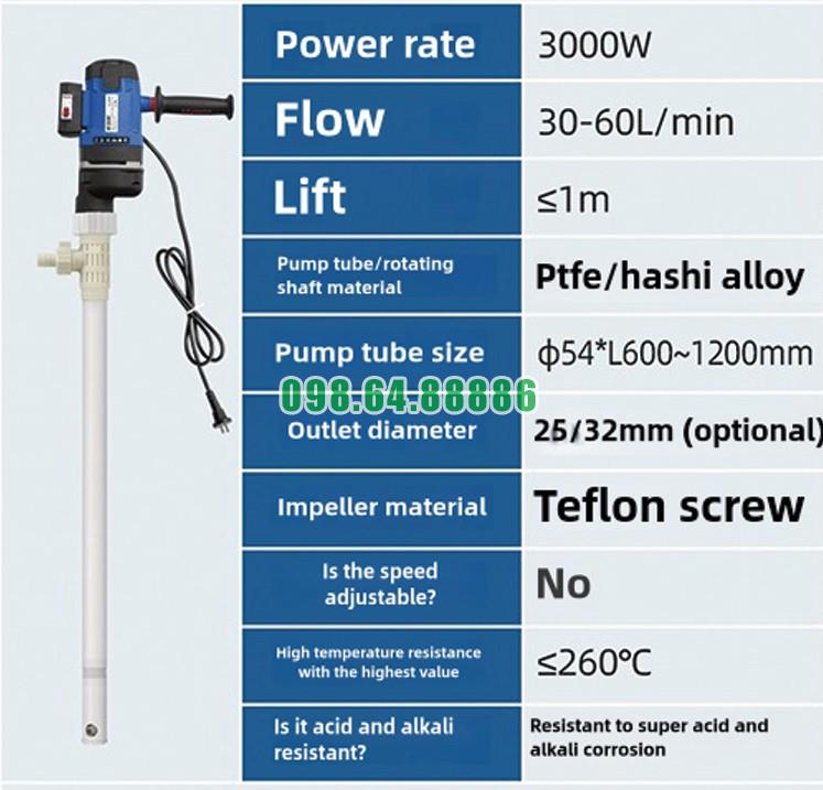 Ưu điểm của Bơm trục vít cầm tay hút thùng phuy JDT-3000W-PTFELG nằm ở công suất mạnh mẽ, khả năng bơm chất lỏng độ nhớt cao, vật liệu chống ăn mòn và thiết kế linh hoạt. Nhờ những đặc điểm này, thiết bị trở thành giải pháp hiệu quả cho việc sang chiết chất lỏng công nghiệp từ thùng phuy một cách nhanh chóng và an toàn.