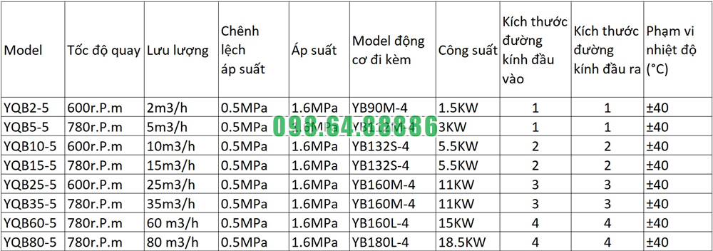 Đặc điểm kỹ thuật của trục bơm trong YQB2-5