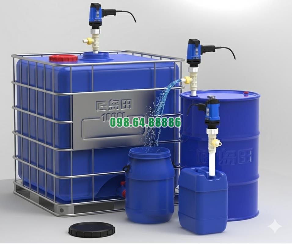 Nhờ thiết kế linh hoạt này, việc chuyển đổi chất lỏng giữa nhiều thùng phuy trở nên nhanh chóng và thuận tiện hơn.