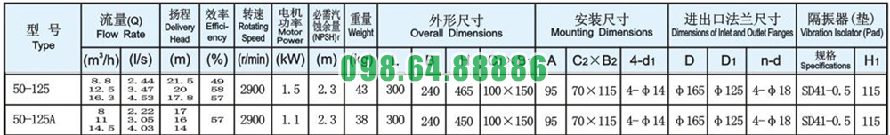 Máy bơm ISG50-125A và IRG50-125A có thể kết hợp với: