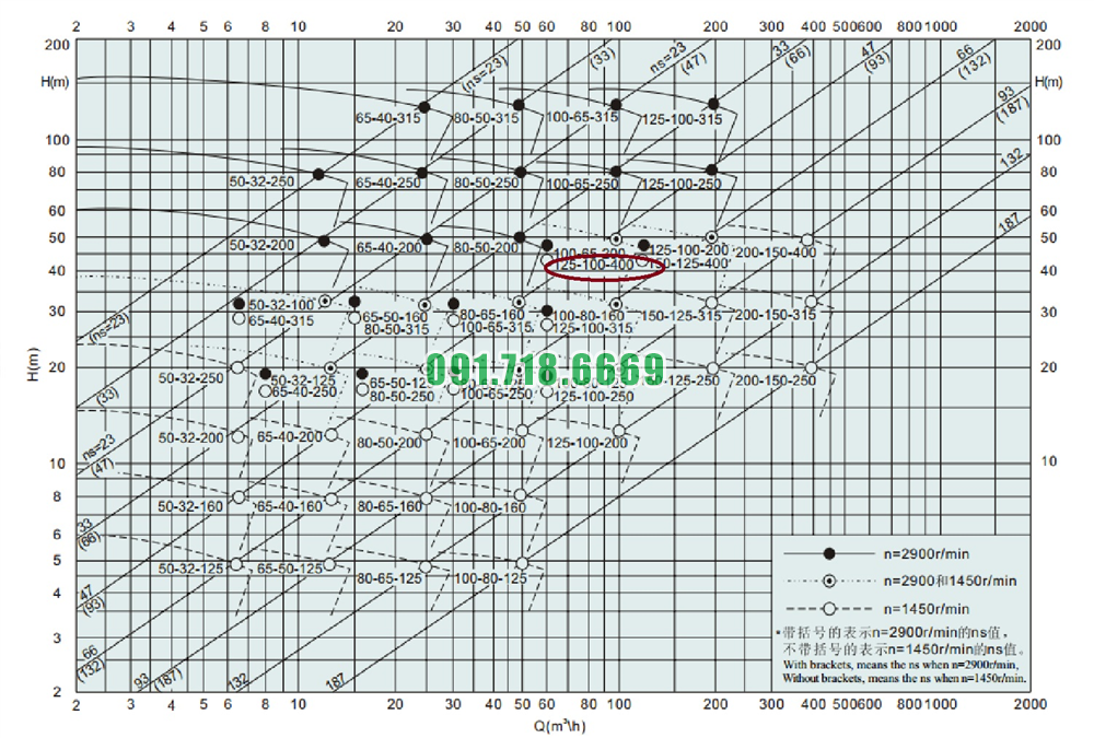 Đường cong hiệu suất của máy bơm nước cánh hở IHK125-100-400 kích thước 100 mm