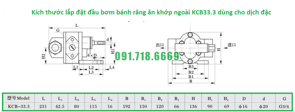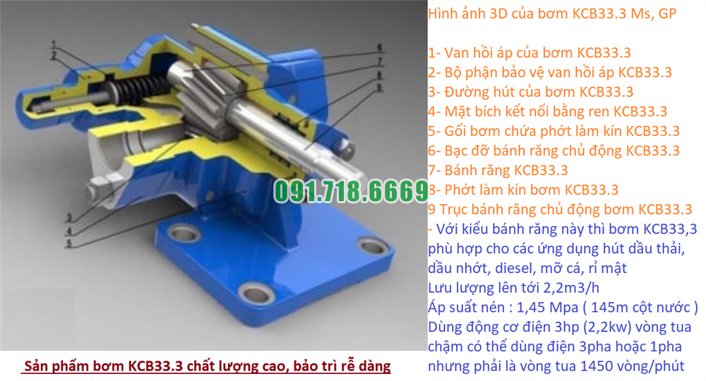 Tổng đài liên hệ mua máy bơm bánh răng tốc độ 1400 vòng/phút KCB33.3