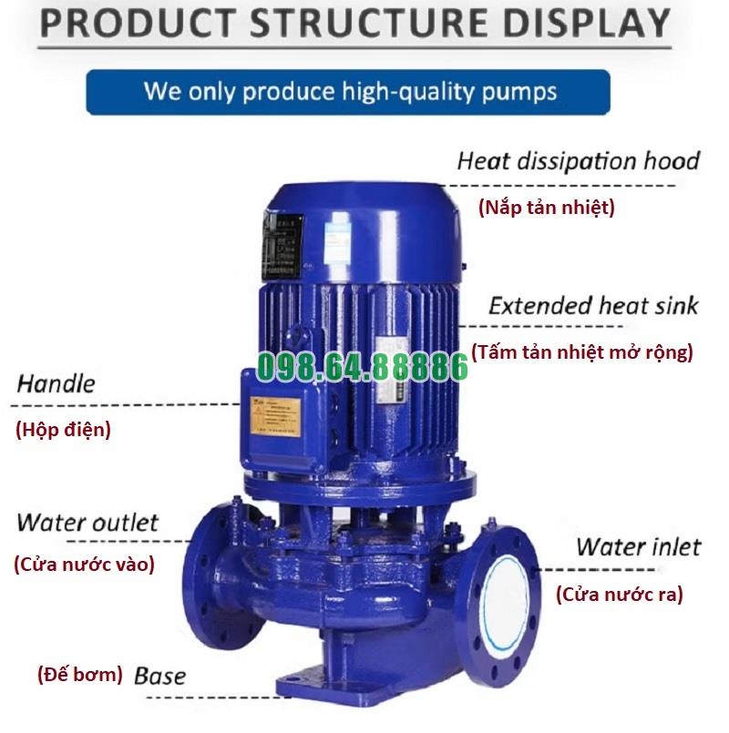 Bơm inline, bơm trục đứng, bơm booster inline ISG65-160A, IRG65-160A 4kw, 23.4 m3/h