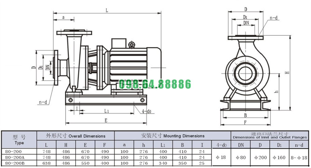 Bơm li tâm trục ngang mode SLW80-ISW80-200