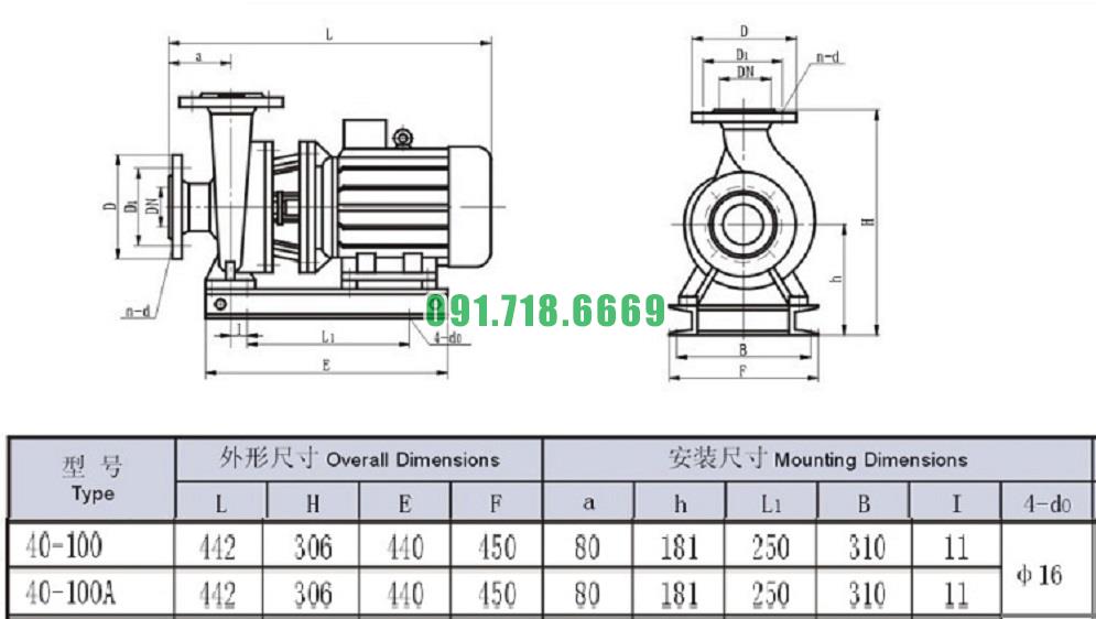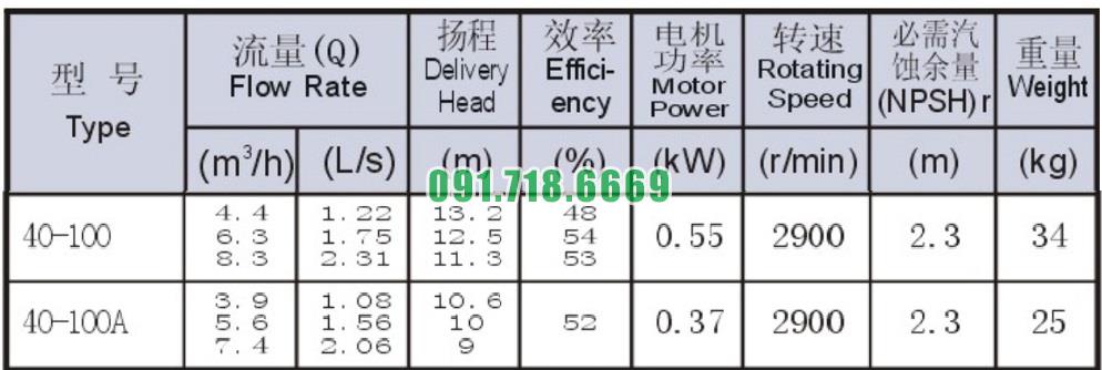 Bơm nước li tâm trục ngang công suất 8.3 m3/h model SLW-ISW40-100