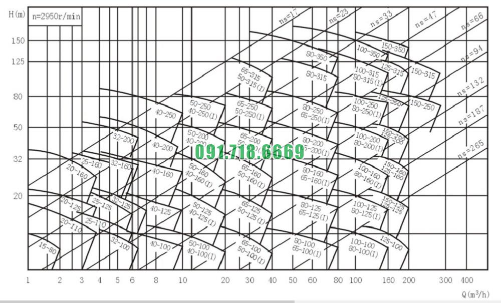 Đường cong hiệu suất bơm nước trục ngang SLW-ISW50-125 khối lượng 44 kg