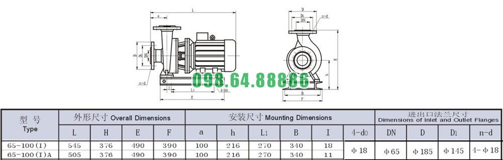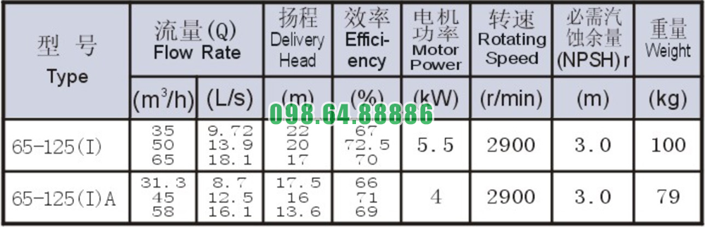 Bơm nước trục ngang SLW65-ISW65-125-I hiệu năng 72.5%