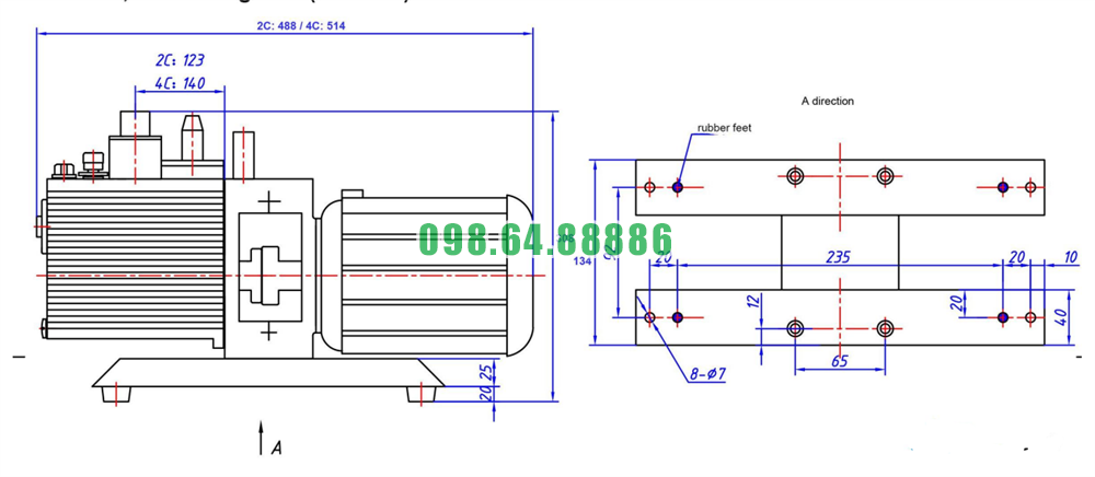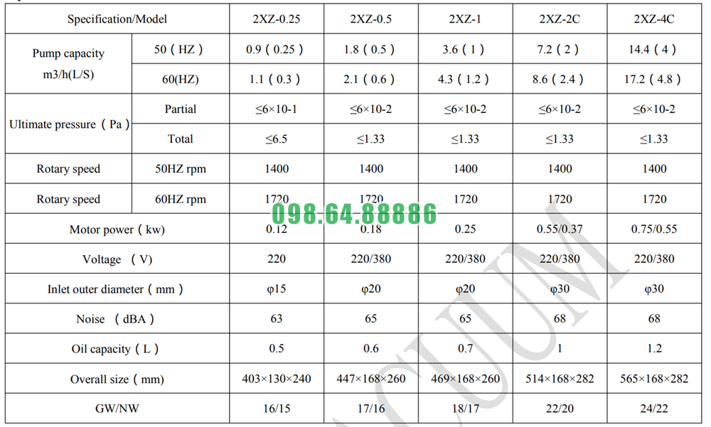 Bơm sơ cấp 2XZ-2 không sử dụng dây curoa, giúp giảm ma sát, giảm rung và giảm tiếng động cơ trong quá trình hoạt động.