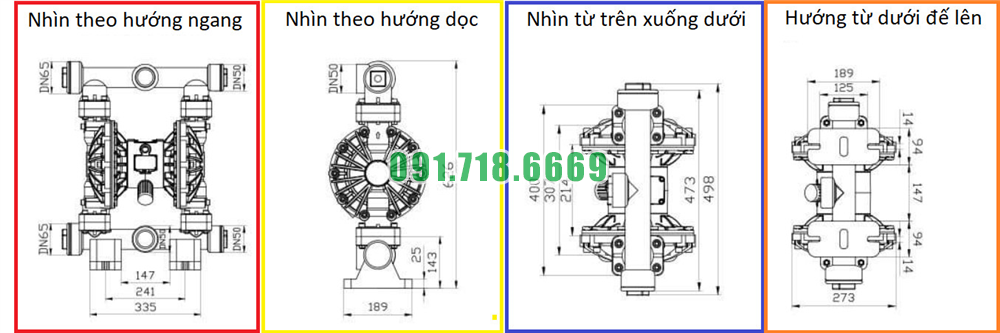 Bản vẽ kỹ thuật máy bơm màng QBY3-50STFF hút sâu 3m