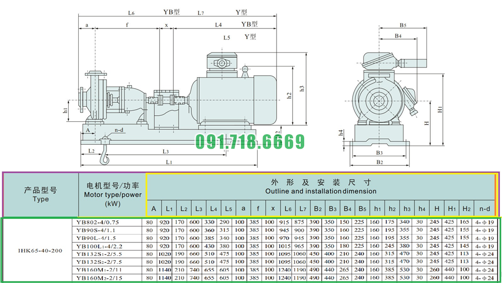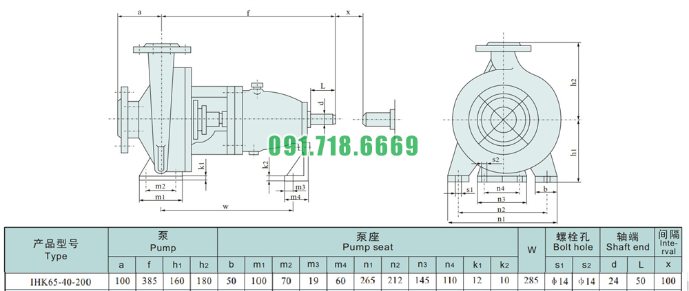 Kích thước lắp đặt của bơm li tâm cánh hở model IHK65-40-200