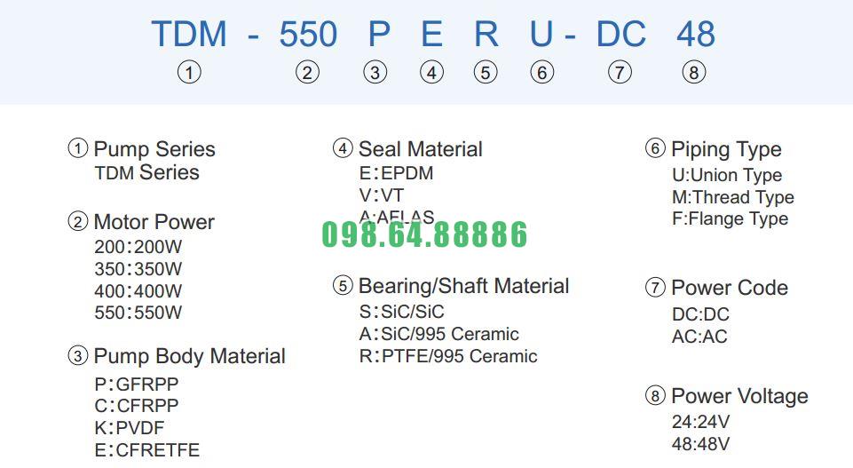 Bơm hóa chất TDM-200PERU-DC48 tốc độ quay 2200 vòng/phút đẩy cao 8.5m đạt tiêu chuẩn chất lượng