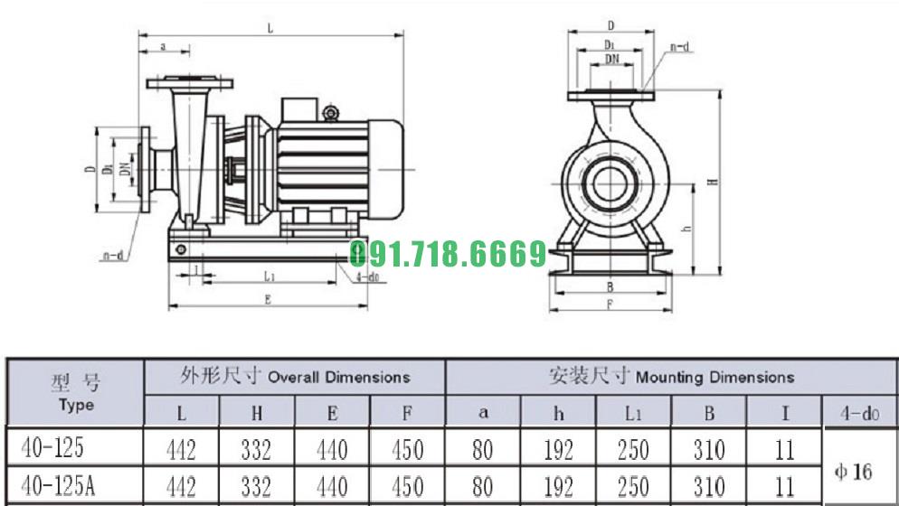 Giá bơm nước trục ngang SLW-ISW40-125 độngg cơ 1.1 kw lưu lượng 8.3 m3/h