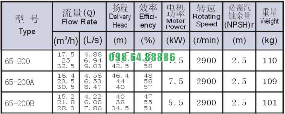 Đặc điểm nổi bật của bơm nước trục ngang SLW-ISW65-200 với động cơ 7.5 kW và lưu lượng 32.5 m³/h bao gồm: