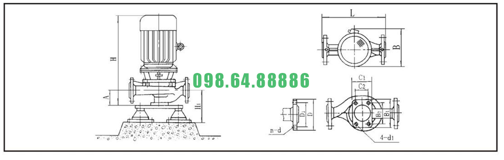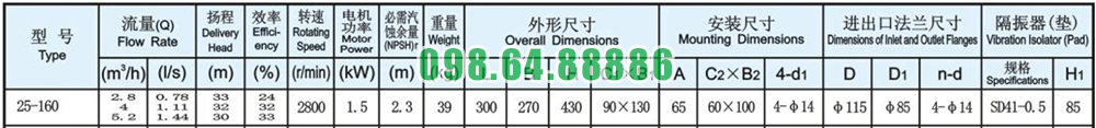 Giá máy bơm ly tâm trục đứng model ISG25-160, IRG25-160 công suất 1.5 kw