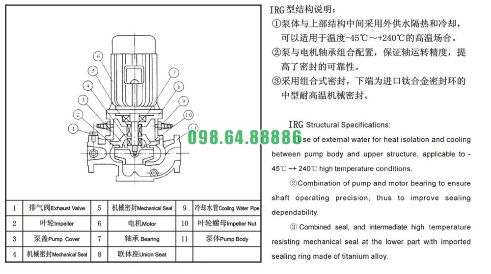 Bơm ly tâm trục đứng ISG25-160, IRG25-160 công suất 1.5kW được chế tạo từ vật liệu cao cấp và bền bỉ, phù hợp với các hệ thống làm việc liên tục, có yêu cầu cao về hiệu suất và tuổi thọ. Sự kết hợp giữa gang, inox, đồng và thép không gỉ giúp bơm hoạt động ổn định trong nhiều điều kiện môi trường khác nhau, từ dân dụng đến công nghiệp