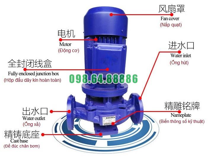 Máy bơm inline, bơm tăng áp, bơm đồng trục thẳng đứng ISG80-160B, IRG80-160B 5.5kw